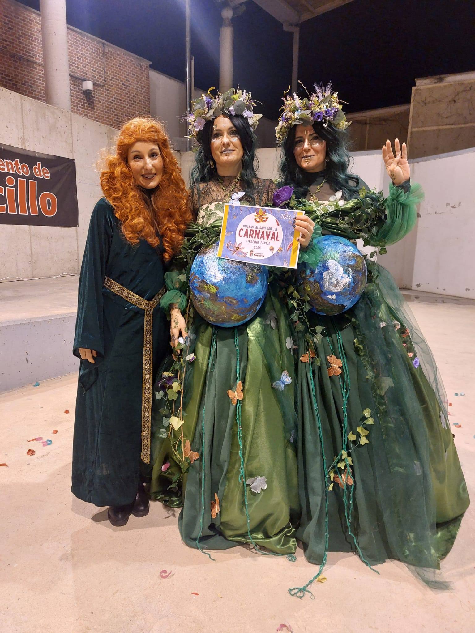 En esta línea, tras el desfile de todos los participantes y la deliberación del jurado, se pasó a la entrega de premios que, por categorías, recayeron en Nieves y su disfraz de ‘Seiryú’, en el caso de la modalidad individual; y en María Jesús y Elena con su traje de ‘Madre Tierra’ en la sección de parejas. Por su parte, en la categoría de grupos se repartieron dos premios: el segundo para Clara, Paula y Daniela, quienes tomaron el rol de las hormigas ‘Trancas, Barrancas y Petancas’; y el primero fue a parar a Lara, Tamara, Vero, Sara y Virginia, que sumergieron a los presentes en el fondo del mar con su disfraz de ‘Oceánicas’.