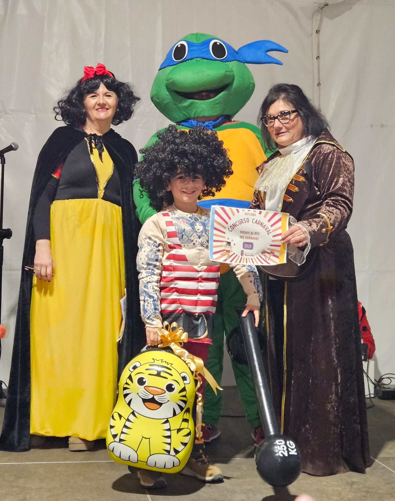 Así pues, tras cerca una hora de modelaje carnavalero, en la que se pudieron disfrutar de cerca de un centenar de propuestas, el jurado dio a conocer su veredicto, y entre las diferentes modalidades se entregaron los premios al disfraz más gracioso a una peculiar ‘madre estresada’; el premio al más pequeño del carnaval a un gracioso sol de tan solo tres meses de edad; mientras que los premios al mejor disfraz grupal fueron para ‘A tope’, la comparsa formada por un divertido equipo de boxes, para el hombre del tiempo y todos sus fenómenos meteorológicos y para unas simpáticas cebras.
