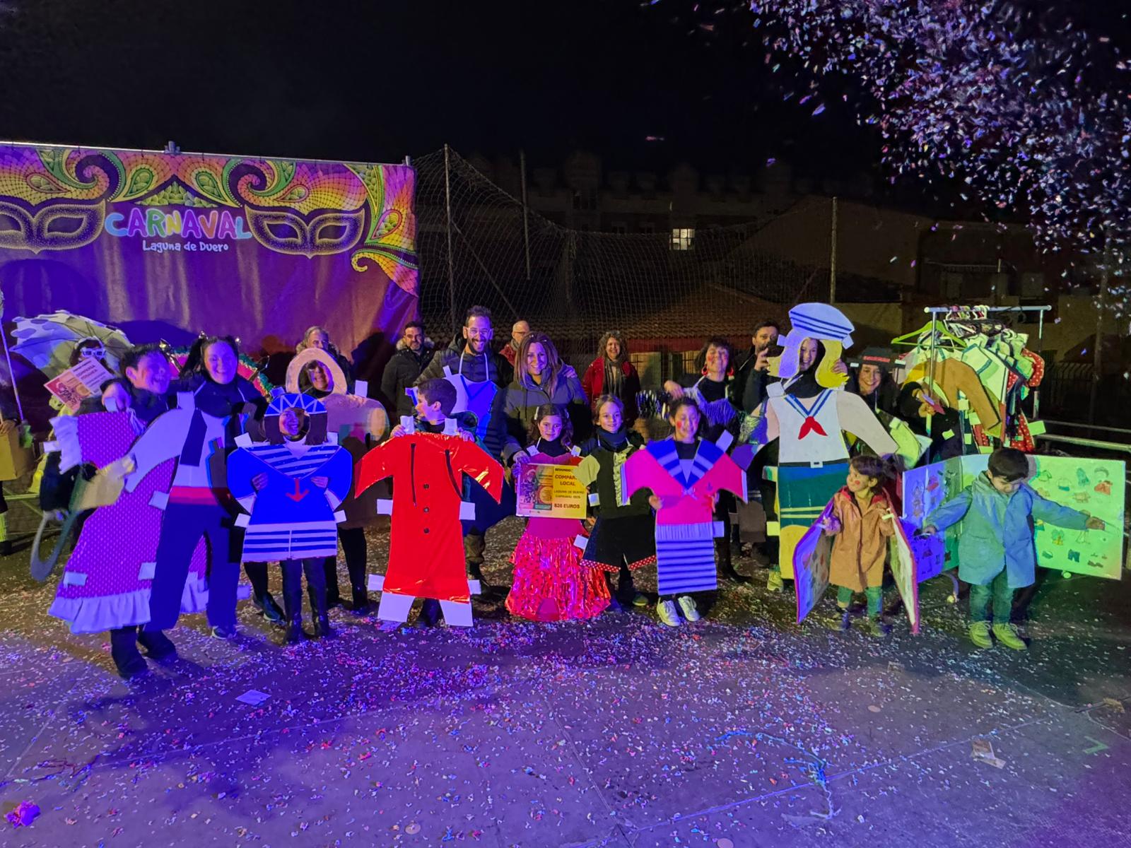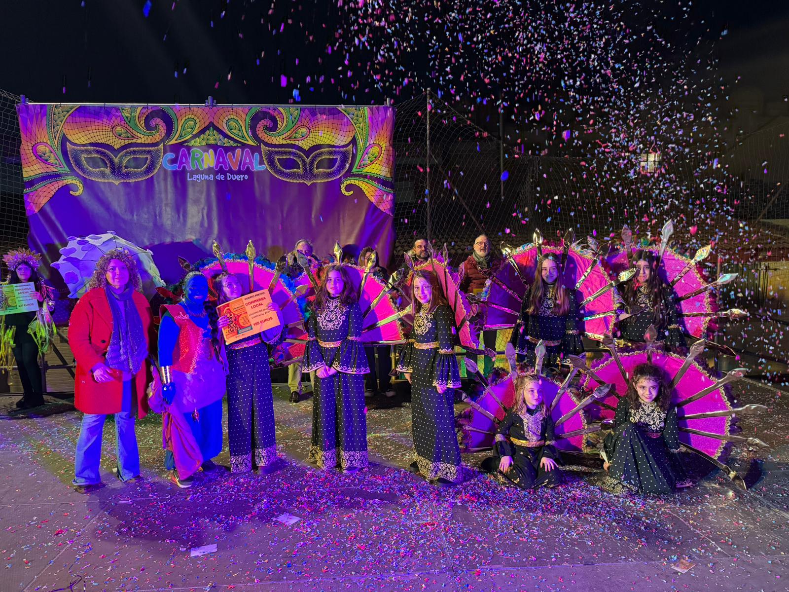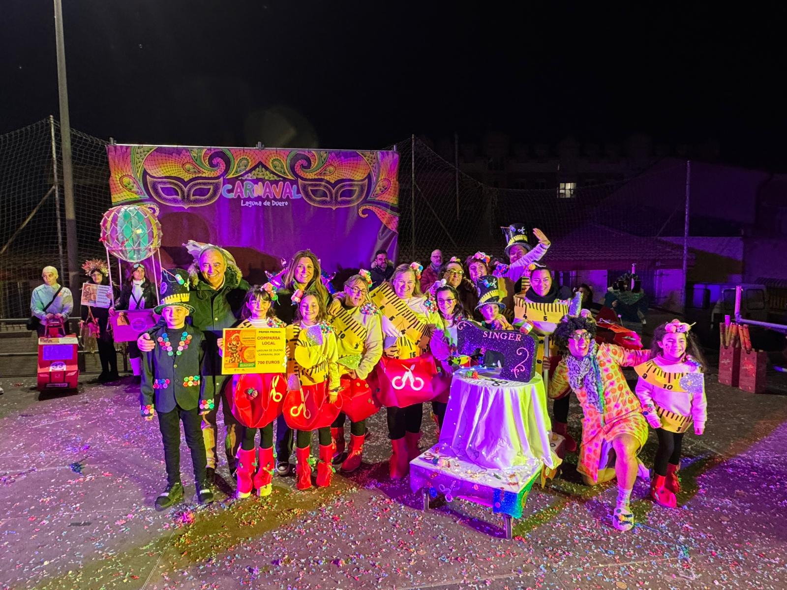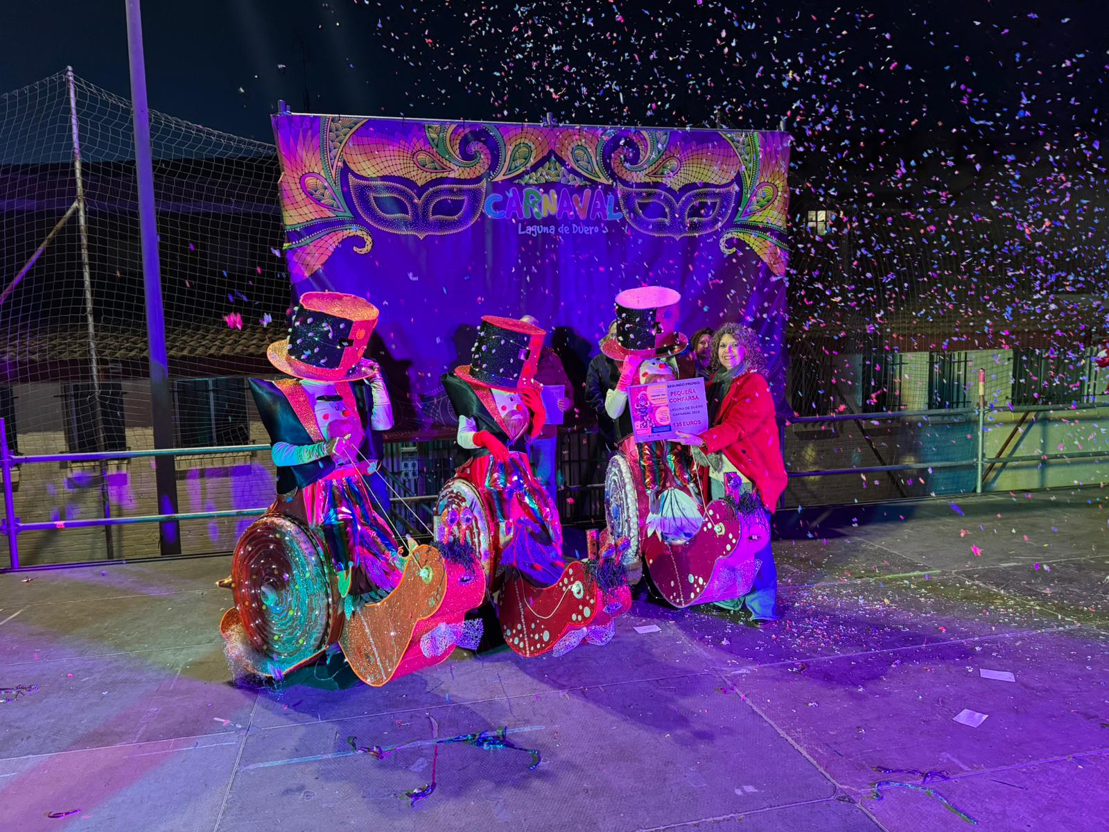 En la modalidad de disfraz en pareja o pequeña comparsa, el primer premio, también dotado con 215 euros, fue para “Patito Feo”, y el segundo premio, de 135 euros, para “Los Caracoles del Duero”.