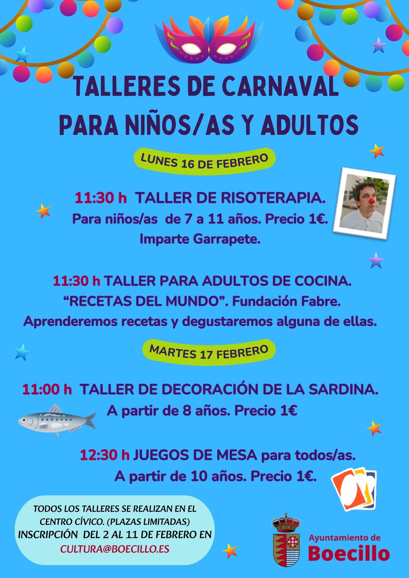 Para participar en todos los talleres será necesario previa inscripción -del 2 al 11 de febrero- en cultura@boecilo.es.