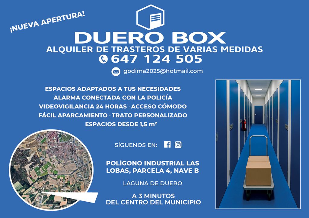 Ubicado en el Polígono de Las Lobas, en la parcela 4 nave B, y con una conexión inmejorable con Laguna de Duero, Duero Box se presenta como un centro de self storage que ofrece trasteros de distintos tamaños, con alquiler mínimo de un mes, dotados de un sistema de domótica que los hacen más accesibles, así como de un sistema de seguridad para garantizar el bienestar de las distintas pertenencias de sus clientes.