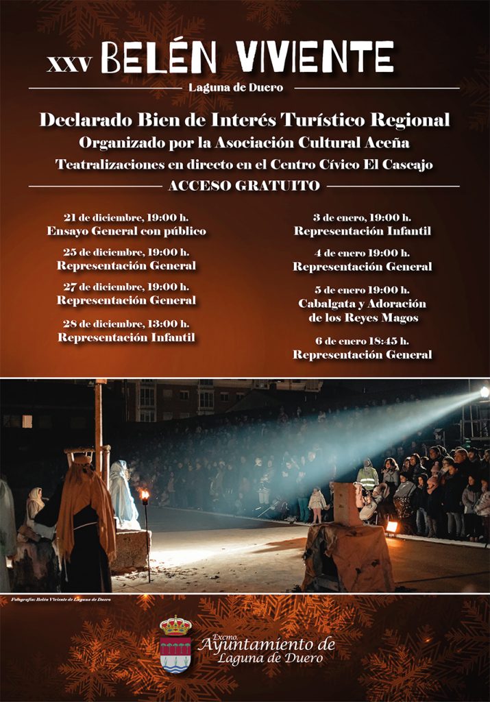 Comenta que, un año más, “apuestan” por la doble actuación infantil, ya que “los niños son nuestra cantera y el futuro del Belén Viviente, y cada año esta representación tiene más público. Esta es la undécima edición del Belén Infantil y queremos seguir creciendo con ellos en los años sucesivos”. Asimismo, Antolín advierte que, dada la nueva declaración de Bien de Interés Turístico Regional, esperan más afluencia de visitantes, y comenta que, de seguir creciendo, el planteamiento para próximas ediciones será ampliar el número de actuaciones. Hasta entonces, invita a los vecinos de toda la provincia y alrededores a acercarse a Laguna en estas fechas y “disfrutar de una representación que no va a dejar a nadie indiferente”.