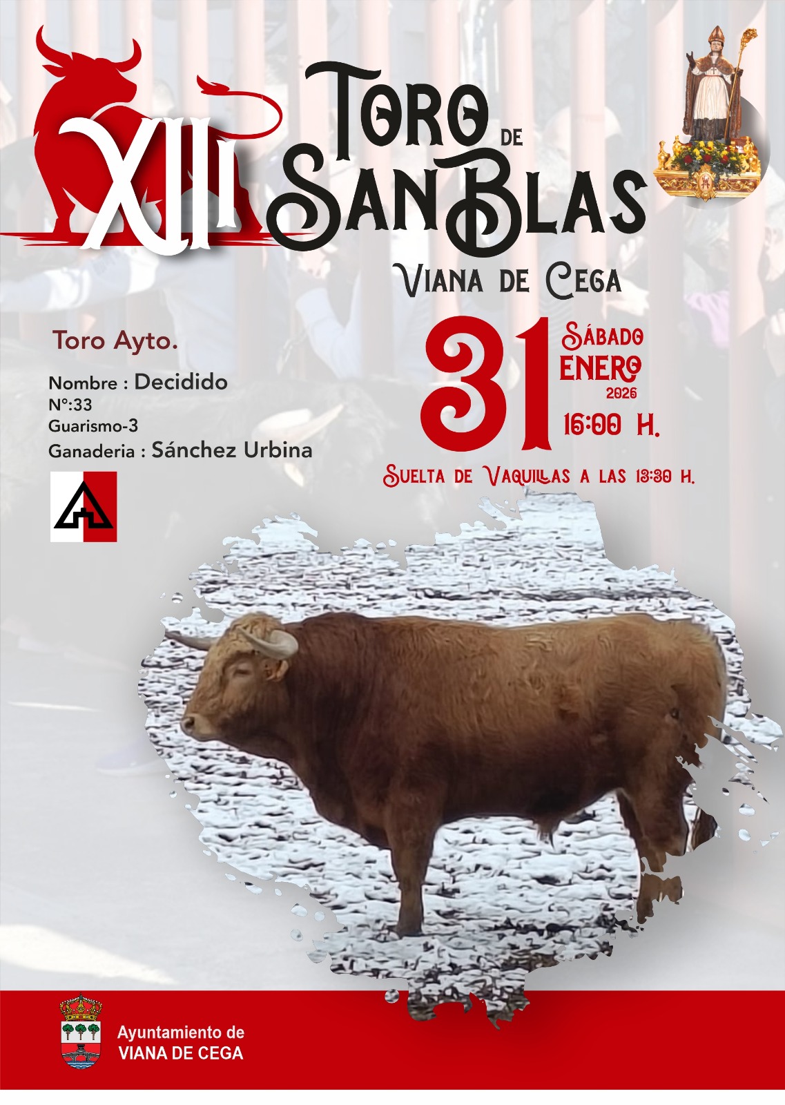 De este modo, ‘Decidido’, de la ganadería Sánchez Urbina, será el astado protagonista del Toro de San Blas a las 16:00 horas del 31 de enero, marcado con el número 33 y guarismo 3, que hará las delicias de vecinos y aficionados. Y todo ello bajo el velo protector de Protección Civil y Guardia Civil.