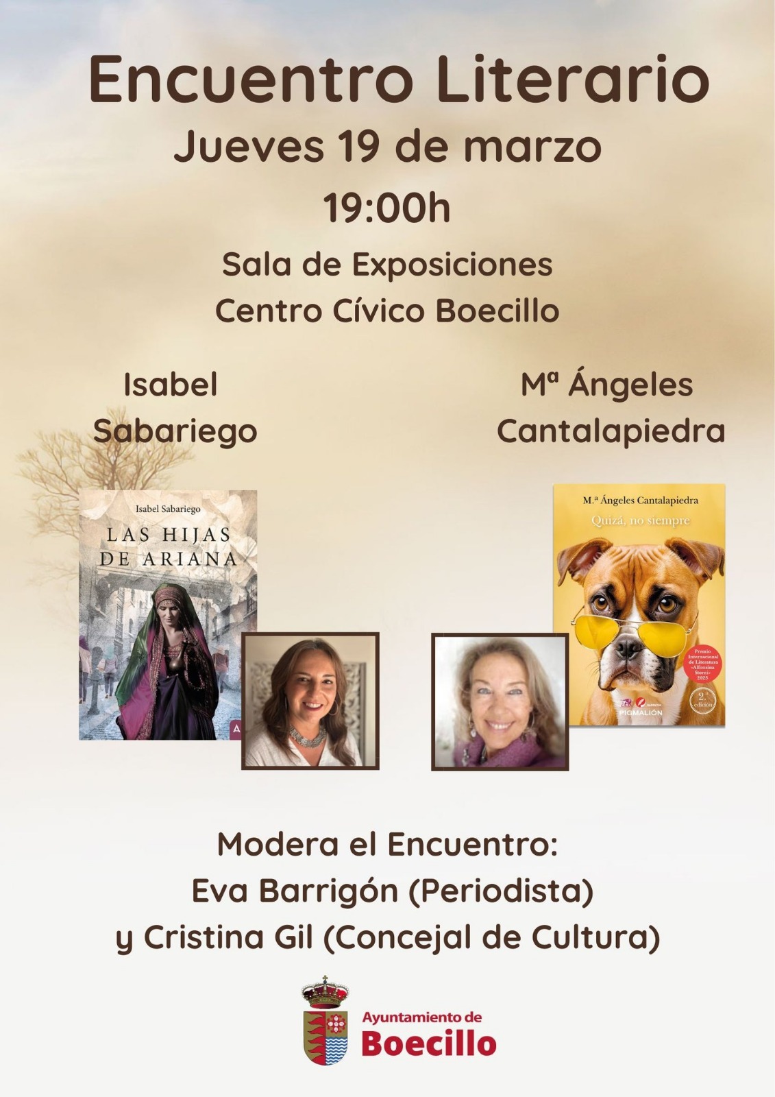 El Centro Cívico de Boecillo se convirtió en un espacio para la reflexión literaria el pasado jueves, en un encuentro que reunió a las escritoras Isabel Sabariego y Mª Ángeles Cantalapiedra con lectores boecillanos. En un ambiente cercano y participativo, las autoras compartieron su visión de la escritura y hablaron sobre sus novelas, los temas que recorren sus historias y su proceso creativo.