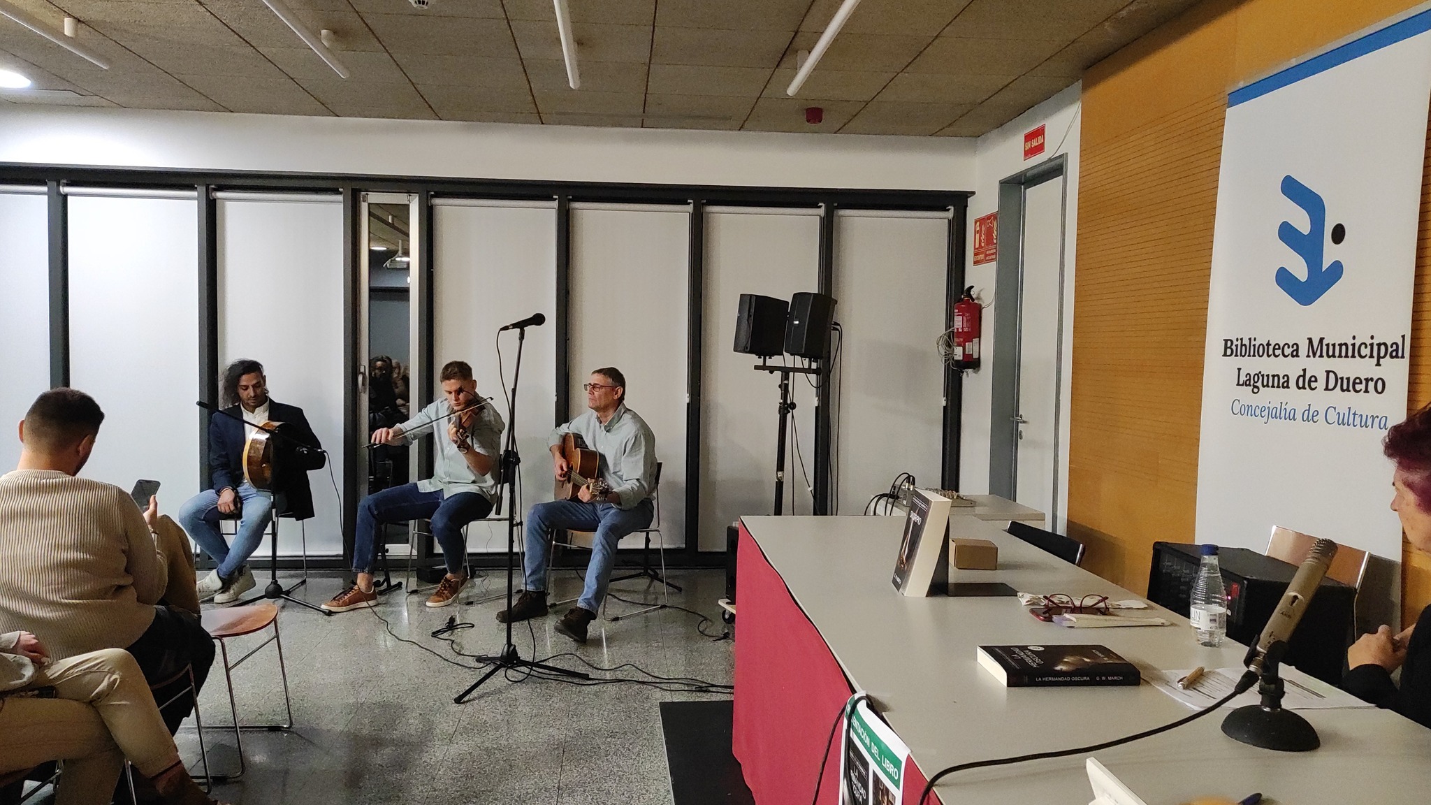 Además, como colofón a la presentación, el escritor deleitó a los presentes con un concierto de música celta junto con dos de los integrantes del grupo Rivendell Folk.