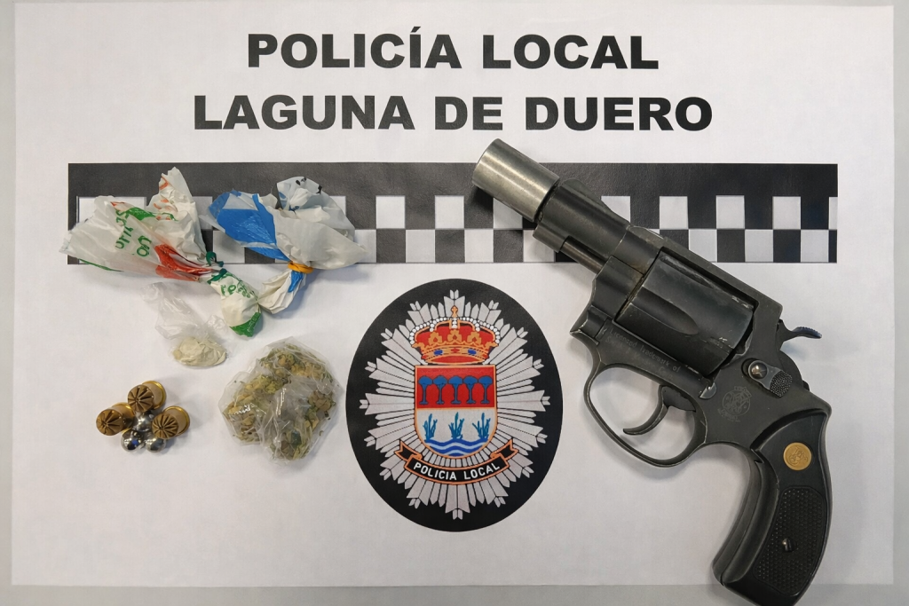 La Policía Local de Laguna de Duero ha detenido a un individuo por un presunto delito de tenencia de armas y sustancias estupefacientes, tras una intervención realizada durante la madrugada del pasado viernes al sábado, en el marco de las labores habituales de vigilancia por el municipio.