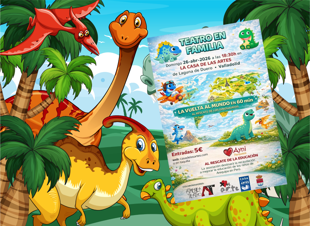 Jóvenes paleontólogos y un profesor chiflado llegarán a la Casa de las Artes el próximo 26 de abril a las 18:30 horas a través de una obra teatral con fines educativos y solidarios. Organizado por la Asociación Cultural Athenea y dirigida por Nuria García, ‘La vuelta al mundo en 60 minutos’ hará las delicias de los más pequeños, ayudando a este peculiar equipo a superar las diferentes pruebas para salvar a los dinosaurios.