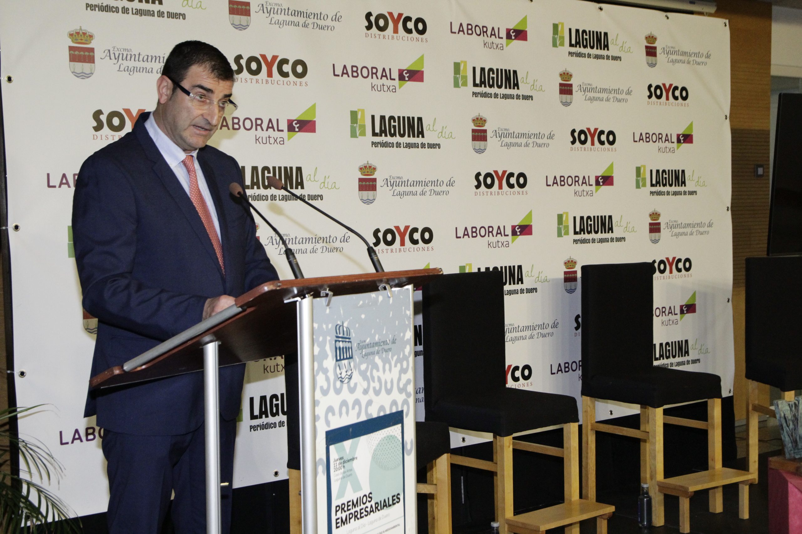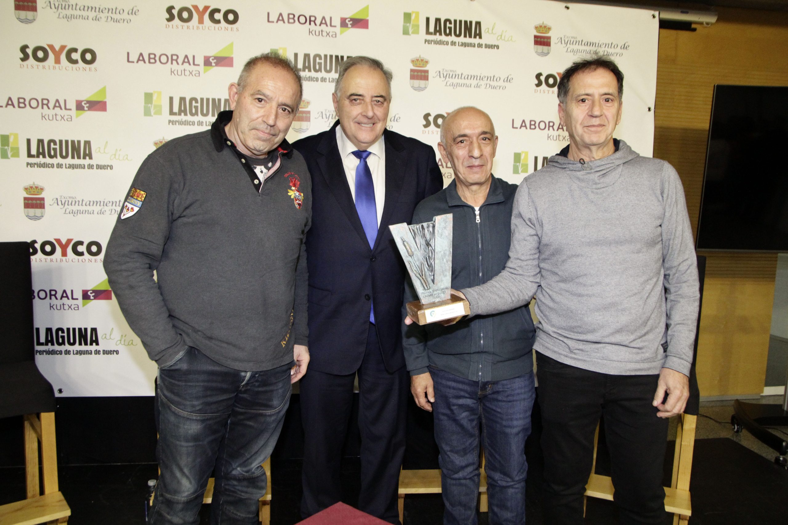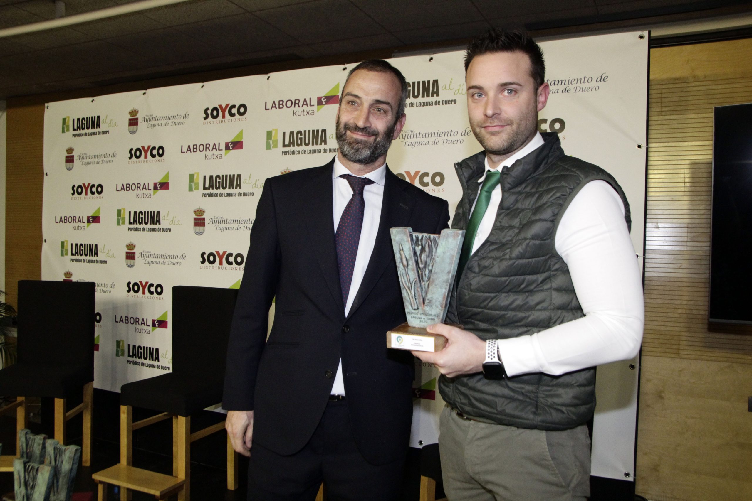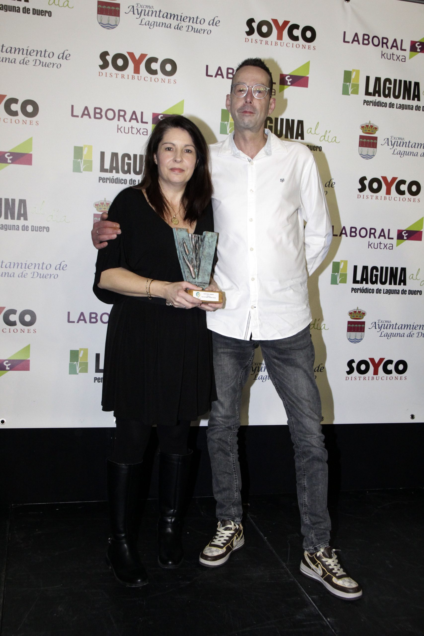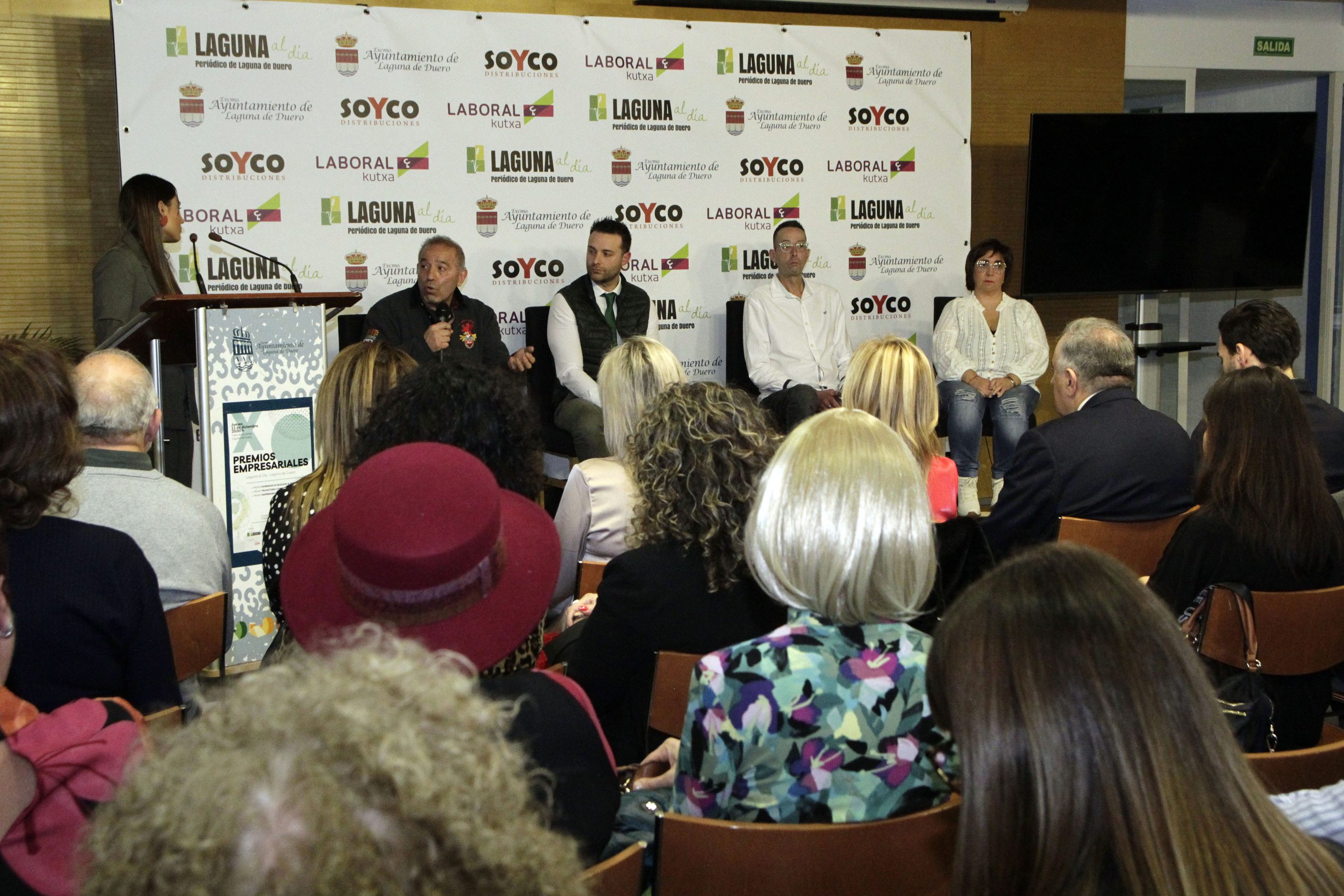 La cita contó nuevamente con la periodista Lidia Veiga como maestra de ceremonias y, como ya es habitual, el inicio de la gala estuvo protagonizado por la intervención de Joaquín Vicente y Jorge Lera, responsables de Laguna al día, quienes agradecieron al Consistorio y a todas las empresas y asociaciones «que hacéis posible año a año que estos premios sean una realidad», así como a los patrocinadores SOYCO Distribuciones y Laboral Kutxa. «Estos premios cumplen una década, un período en el que hemos visto pasar cerca de una treintena de premiados, hemos presenciado una gran transformación y en el que queda claro que, con trabajo, ideas y proyecto, las iniciativas empresariales salen adelante», señalaron los directores del medio, quienes agradecieron también a CEOE Valladolid, Fecosva, AICOSLA y la Asociación de Hosteleros de Laguna de Duero su colaboración en los premios, como parte del jurado.