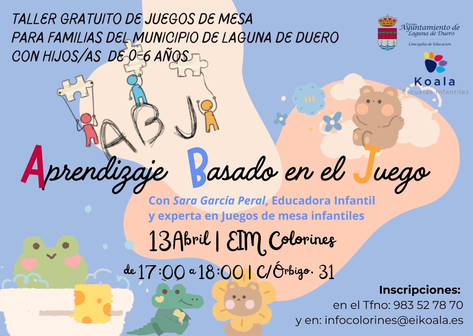 Los talleres son gratuitos y están abiertos para las familias matriculadas en los centros como a los vecinos laguneros con hijos entre esas edades. Las plazas se adjudicarán por orden de inscripción hasta completar aforo. El calendario de actividades empezará el 13 de abril con un taller de Aprendizaje Basado en el Juego (ABJ), se realizará de 17:00 a 18:00 horas en la Escuela Infantil Colorines y será impartido por Sara García Peral, educadora infantil y experta en juegos de mesa infantiles.