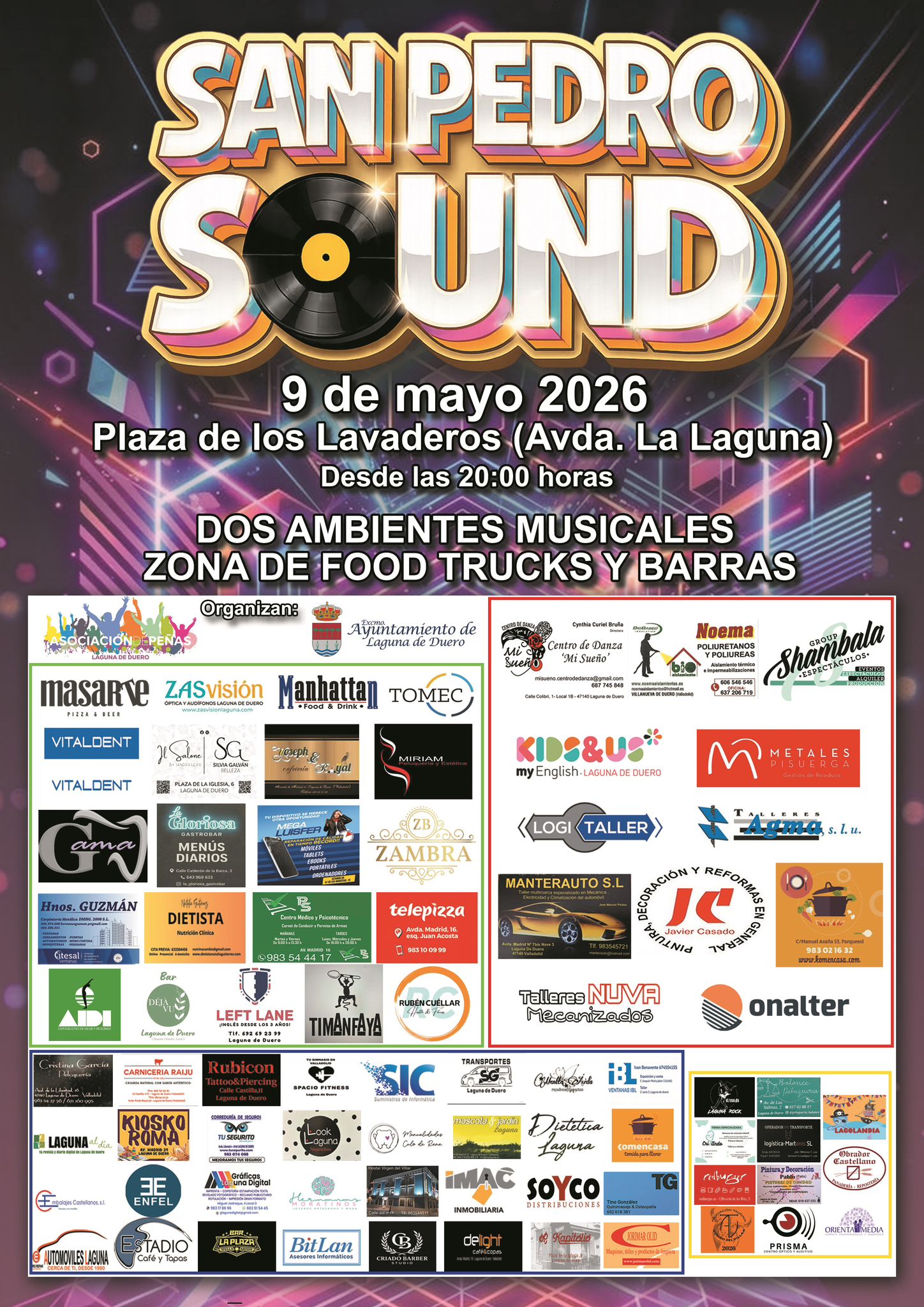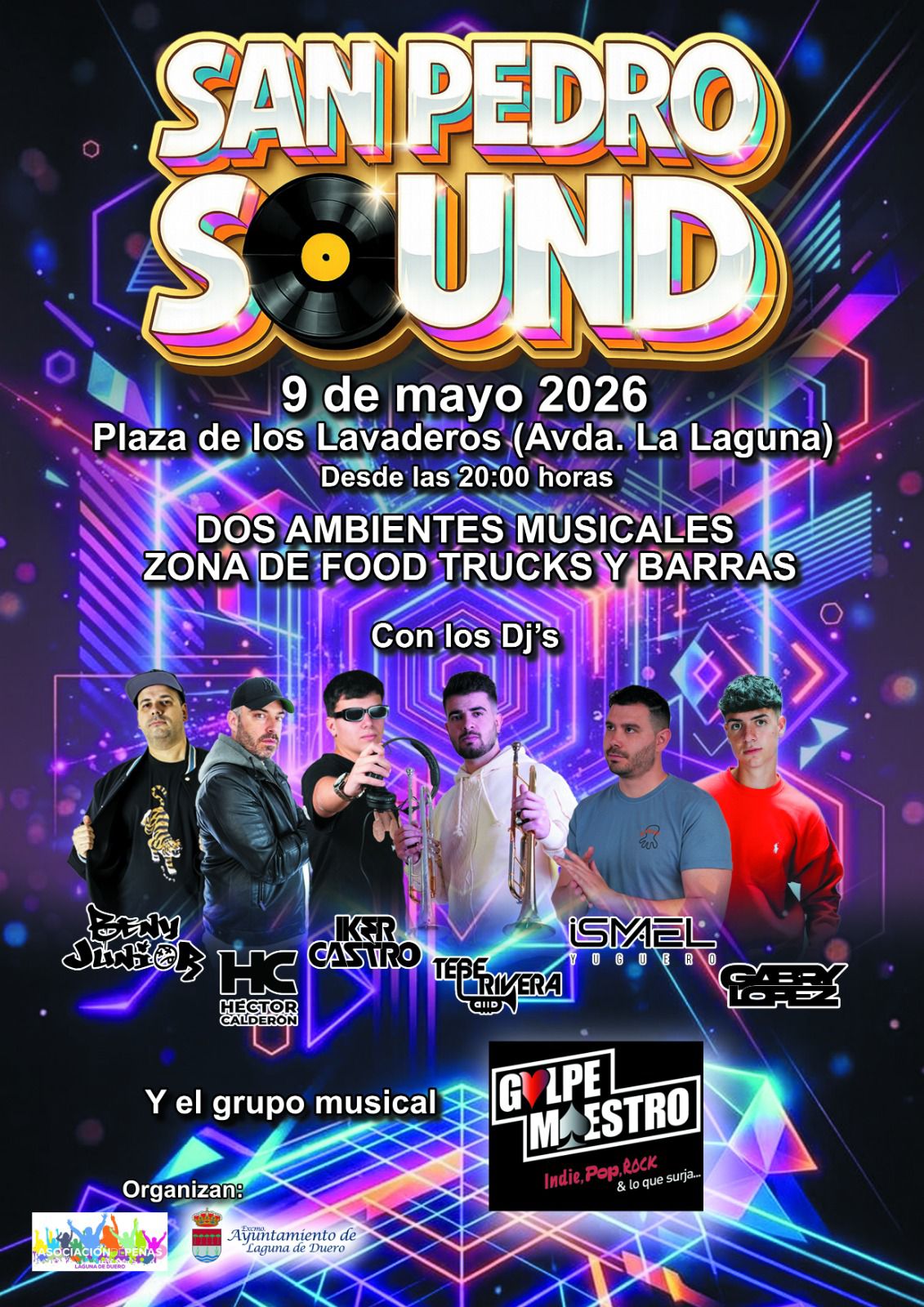 Laguna de Duero cuenta los días para las fiestas de San Pedro Regalado, unas festividades que contarán, entre sus principales reclamos, con el San Pedro Sound, un evento musical que se celebrará el sábado 9 de mayo en la Plaza de los Lavaderos, en la Avenida La Laguna, a partir de las 20:00 horas. Organizado por el Ayuntamiento y la Asociación de Peñas de Laguna de Duero, el encuentro combinará tanto música en directo como sesiones de DJs, junto a una variada oferta gastronómica con food trucks. Toda una propuesta marcada de un ambiente festivo, pensada para reunir a laguneros y visitantes en torno a la música, ocio y celebración.