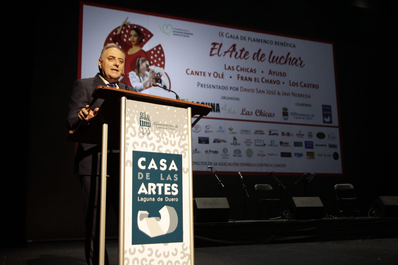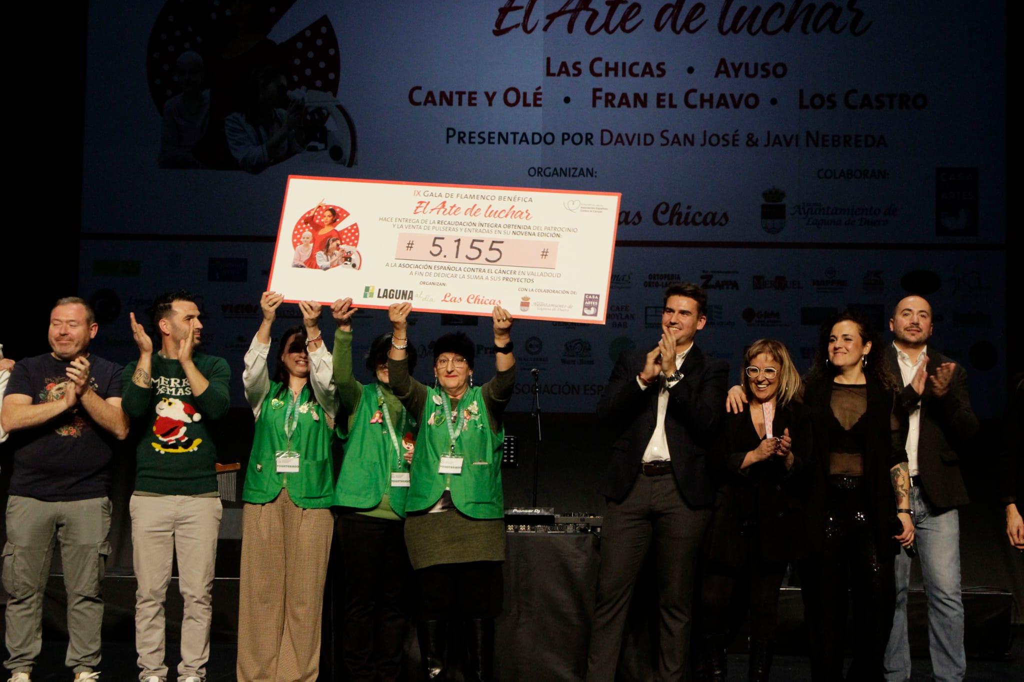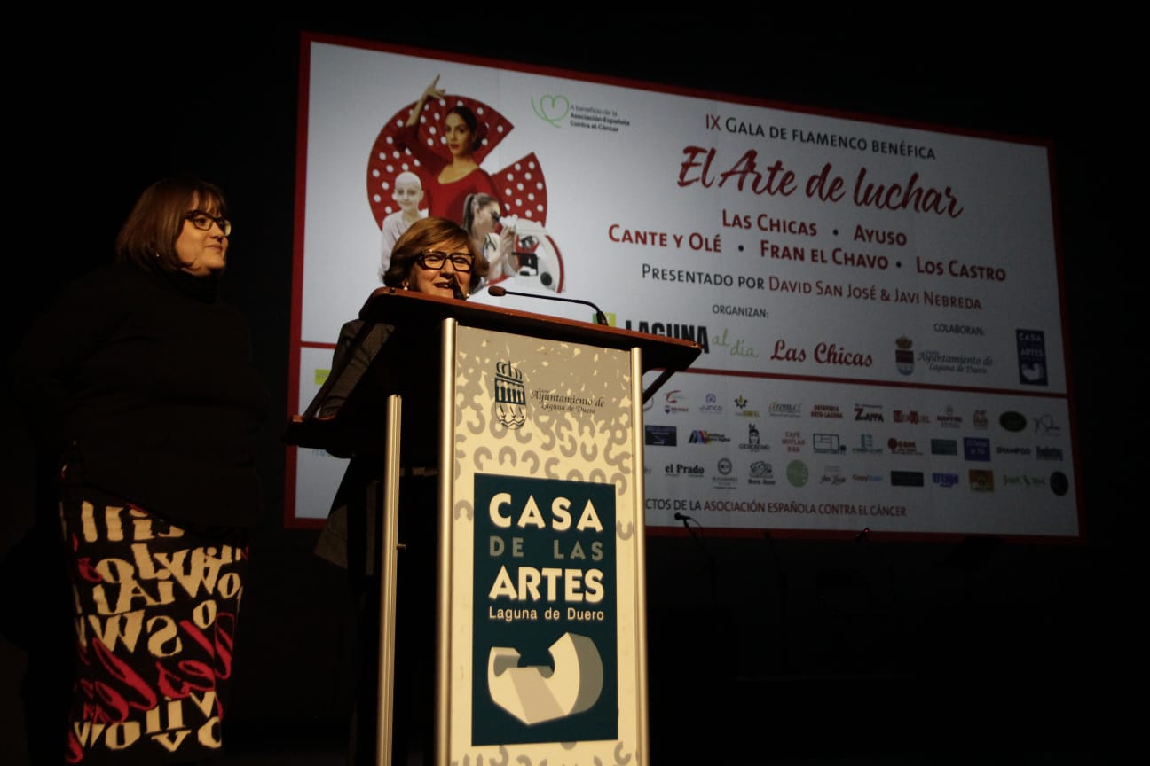 Laguna de Duero alzó el telón de la Casa de las Artes este viernes para celebrar, una vez más, la gala anual ‘El Arte de Luchar’, una iniciativa solidaria organizada por el medio de comunicación Laguna al Día y la agrupación ‘Las Chicas’, en colaboración con el Ayuntamiento y la Casa de las Artes, que en su novena edición consiguió una nueva recaudación récord de 5.155 euros, que irán destinados nuevamente a los proyectos de investigación de la Asociación Española Contra el Cáncer.
