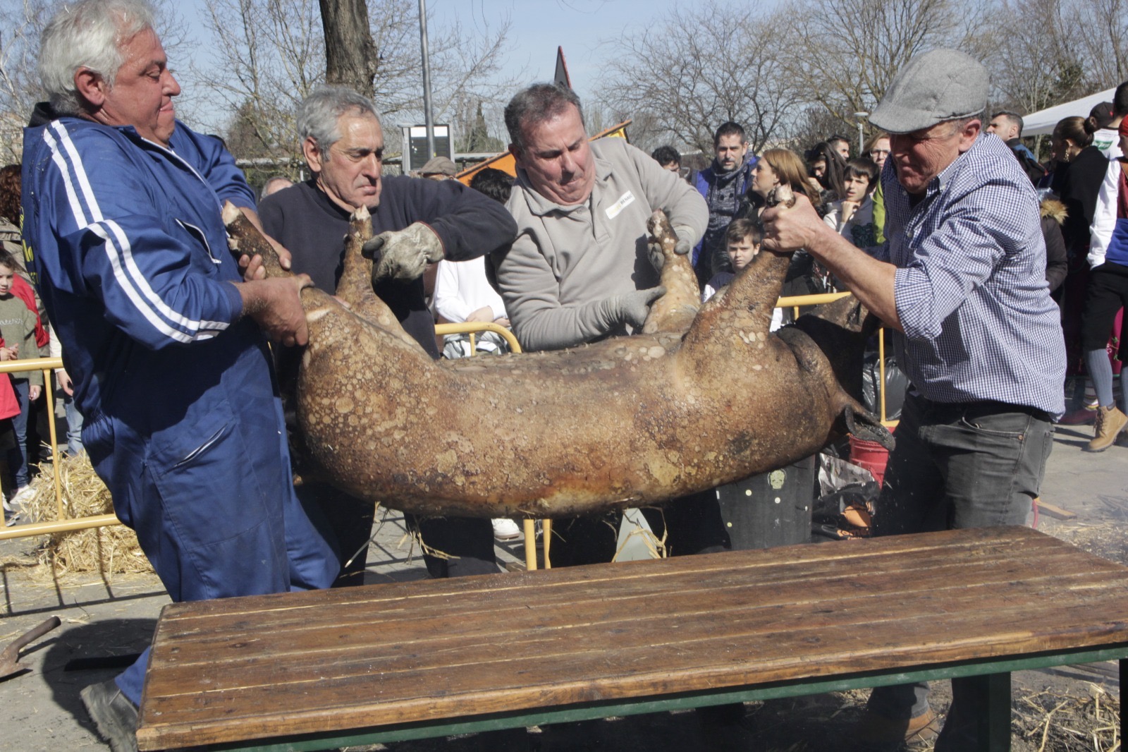 Con ese olor característico que envuelve esta cita, Laguna de Duero se ha visto arrastrada a un viaje en el tiempo para disfrutar por vigésimo séptimo año consecutivo del tradicional chamuscado y destazado del cerdo, poniendo de relieve las diferentes tareas que se llevaban a cabo antes de poder disfrutar de embutidos y de las diferentes partes de este animal.