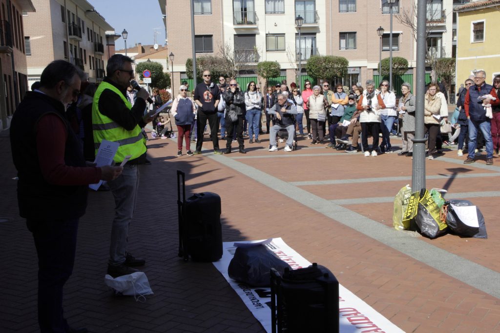 Convocados por dos asociaciones locales, a las 11:30 horas un grupo de vecinos cercano al centenar de personas se reunió así en el ágora principal de la localidad portando sus ya habituales pancartas y bolsas de basuras con el lema ‘No a la Retasa de Basura’. Desde los convocantes mantienen sus reivindicaciones sobre que la recaudación «estará por encima del coste del servicio» y que ese supuesto exceso «está calculado para extraer un beneficio que pueda emplearse en otros destinos no relacionados con la recogida de basuras».